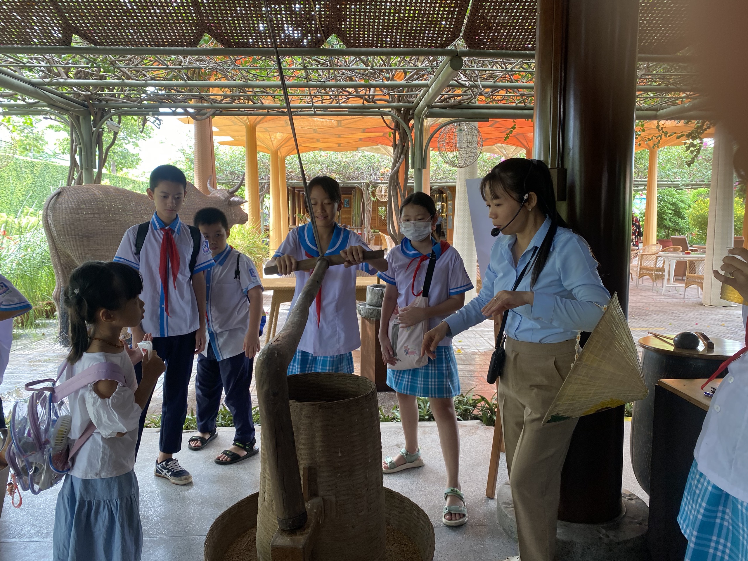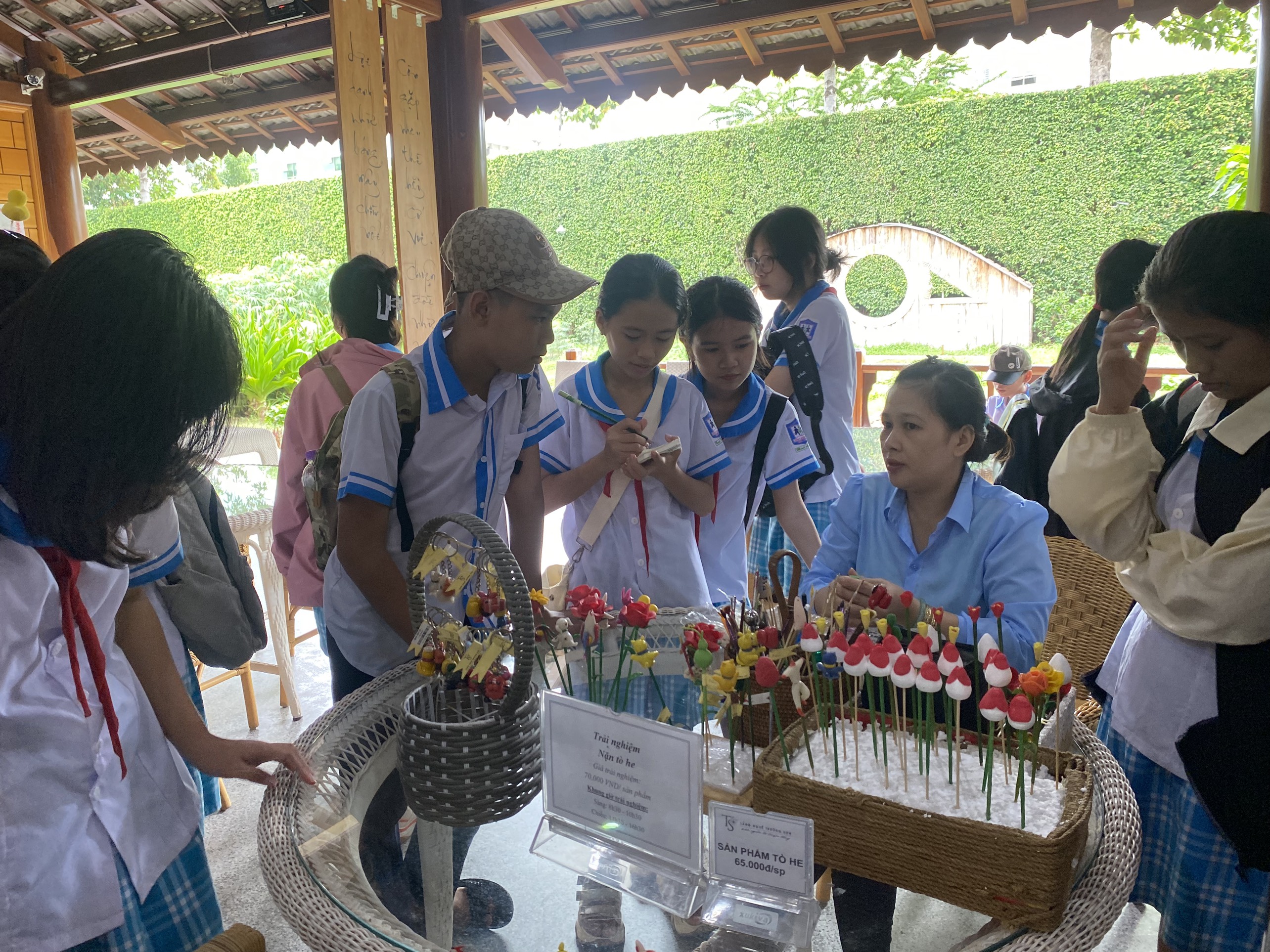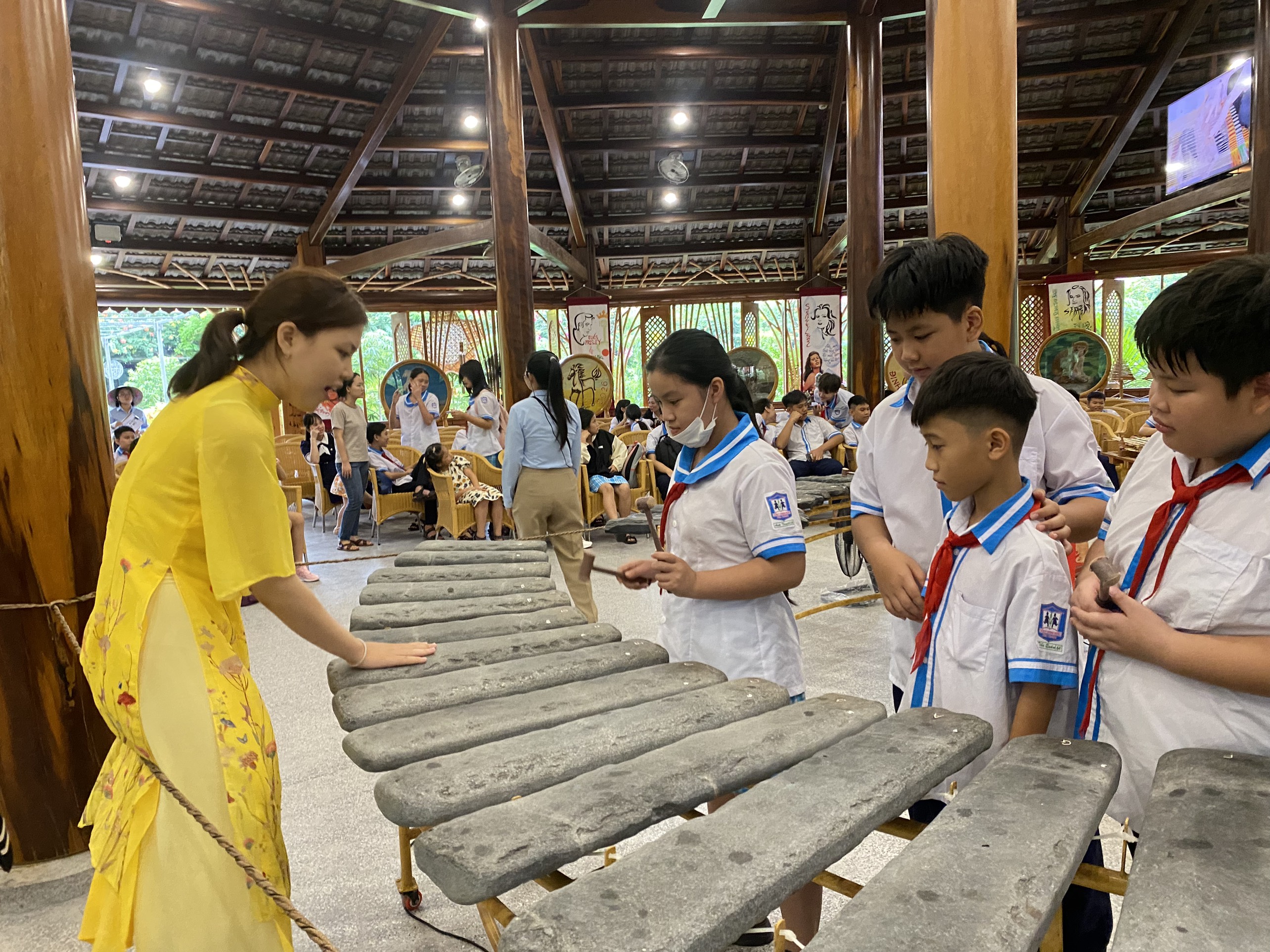 Thông qua hoạt động, học sinh được tham quan khu trưng bày các sản phẩm thủ công mỹ nghệ, không gian nghệ thuật mang đậm tính văn hóa tiêu biểu, đặc trưng của dân tộc. Bên cạnh đó, các em còn được chiêm ngưỡng và học hỏi, tham gia thực nghiệm dưới sự hướng dẫn của các nghệ nhân qua quy trình tạo ra các sản phẩm từ nghề dệt, thuê, đan, điêu khắc, nặn tượng, làm tranh cát... như: song mây, tre lá, chiếu cói, đan lưới, chằm nón lá, mộc mỹ nghệ, làm gốm Lư Cấm, nghệ thuật nhạc họa…Ngoài ra, tại buổi tham quan các em đã được trải nghiệm thực hành vẽ mo cau, làm tò he, thêu khăn tay, làm móc khóa từ dây đan và thưởng thức âm nhạc dân tộc qua các loại nhạc cụ truyền thống.
