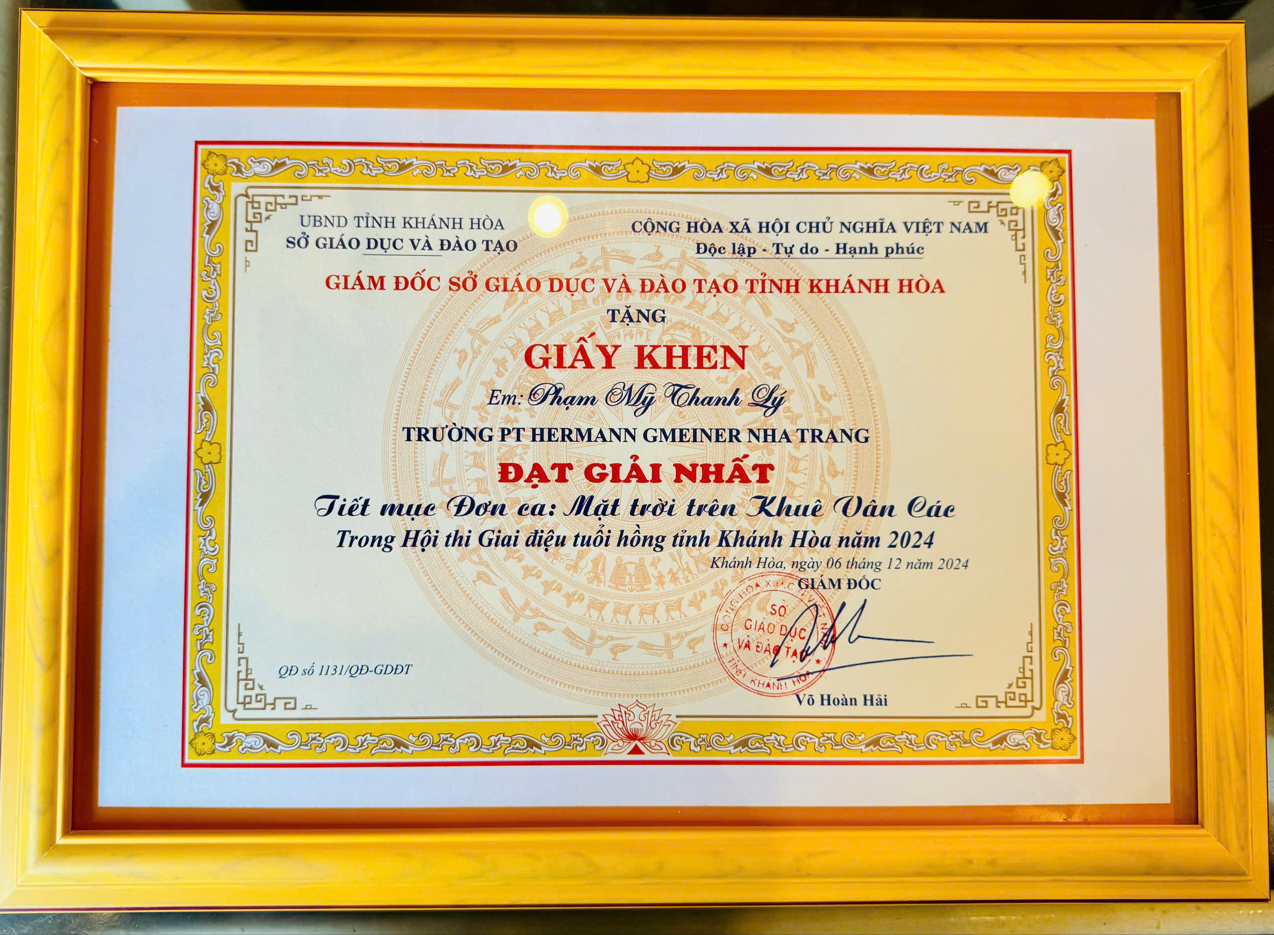 Vượt qua 178 tiết mục tham dự, lọt vào top 19 tiết mục đạt giải Nhất trong Hội thi, trường PT Hermann Gmeiner Nha Trang với tiết mục "Mặt trời trên Khuê Vân Các" đạt giải NHẤT trong chương trình.
